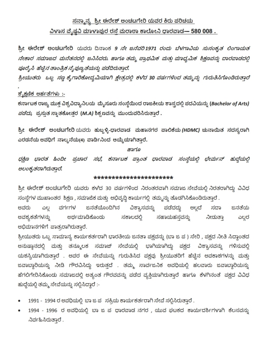 ಈರೇಶ ಅಂಚಟಗೇರಿ ಅವರ ಬಗ್ಗೆ ಮಾಹಿತಿ..