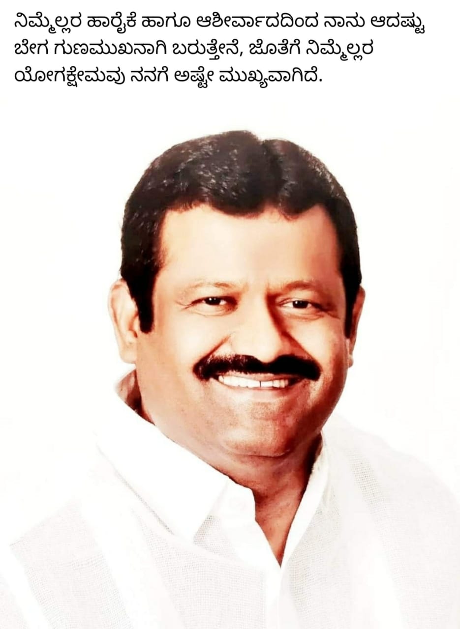 ನಿಮ್ಮೆಲ್ಲರ ಹಾರೈಕೆ ಹಾಗೂ ಆಶೀರ್ವಾದದಿಂದ ನಾನು ಆದಷ್ಟು ಬೇಗ ಗುಣಮುಖನಾಗಿ ಬರುತ್ತೇನೆ, ಜೊತೆಗೆ ನಿಮ್ಮೆಲ್ಲರ ಯೋಗಕ್ಷೇಮವು ನನಗೆ ಅಷ್ಟೇ ಮುಖ್ಯವಾಗಿದೆ.