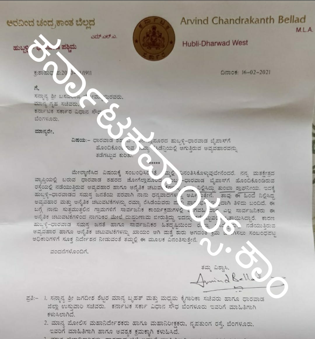 ತಮ್ಮ ಕ್ಷೇತ್ರದ ವ್ಯಾಪ್ತಿಯಲ್ಲಿ ಬರುವ ರಮ್ಯ ರೆಸಿಡೆನ್ಸಿಯಲ್ಲಿ ಈ ಹಿಂದೆ ನಡೆಯುತ್ತಿದ್ದ ಅವ್ಯವಹಾರ ಮತ್ತು ಅನೈತಿಕ ಚಟುವಟಿಕೆಗಳನ್ನ ತಡೆಗಟ್ಟಿದ್ದಕ್ಕೆ ಮೊದಲು ಧನ್ಯವಾದ ತಿಳಿಸಿರುವ ಶಾಸಕ ಅರವಿಂದ ಬೆಲ್ಲದ, ಈಗ ಮತ್ತೆ ಅನೈತಿಕ ಅವ್ಯವಹಾರ ನಡೆಯುತ್ತಿದೆ ಎಂದು ಹೇಳಿದ್ದಾರೆ.