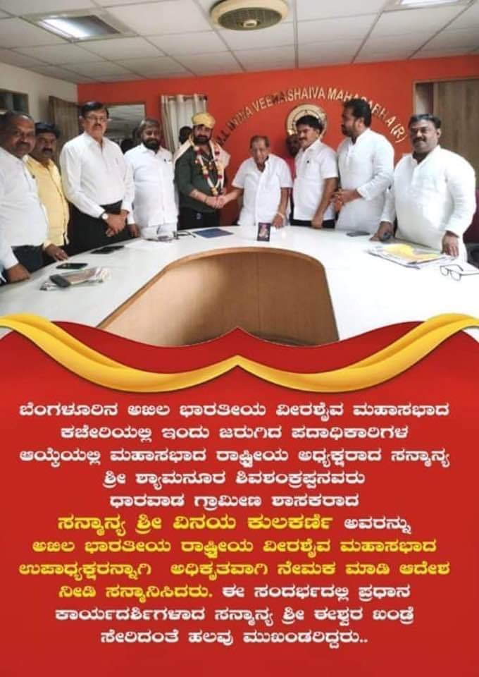 ವೀರಶೈವ ಮಹಾಸಭಾದ ಉಪಾಧ್ಯಕ್ಷರಾಗಿ ಶಾಸಕ ವಿನಯ ಕುಲಕರ್ಣಿ ಆಯ್ಕೆ…