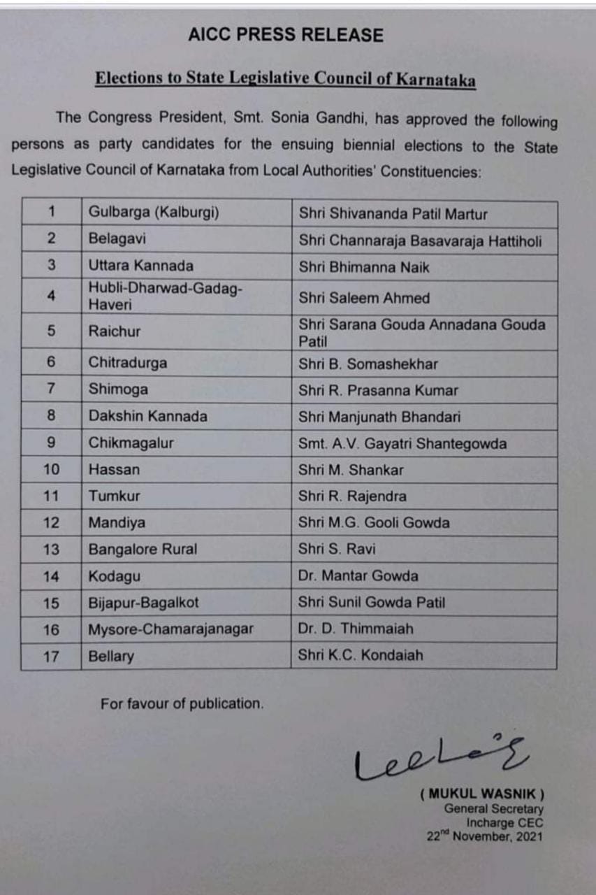 ವಿಧಾನಪರಿಷತ್ ಚುನಾವಣೆಗೆ ನಾಮಪತ್ರ ಸಲ್ಲಿಸುವ ದಿನ ಬಾಕಿಯಿರುವಾಗಲೇ ಟಿಕೆಟ್ ಅಧಿಕೃತವಾಗಿ ಘೋಷಣೆಯಾಗಲಿದೆ. ಹುಬ್ಬಳ್ಳಿ-ಧಾರವಾಡದ ಕೆಲವು ಮುಸ್ಲಿಂ ನಾಯಕರು ನಿರಂತರವಾಗಿ ಪ್ರಯತ್ನ ನಡೆಸಿದರೂ ಕೂಡಾ, ಪಕ್ಷ ಸಜ್ಜನ ರಾಜಕಾರಣಿ ಸಲೀಂ ಅಹ್ಮದರಿಗೆ ಮಣೆ ಹಾಕಿದೆ.