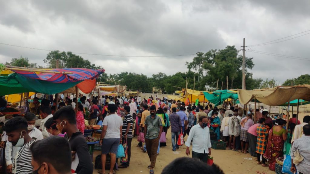 ತಹಶೀಲ್ದಾರ ಆದೇಶದ ಹಿನ್ನೆಲೆಯಲ್ಲಿ ನವಲಗುಂದ ಪಟ್ಟಣದಲ್ಲಿ ಇಂದು ಜಾತ್ರೆಯ ರೀತಿಯಲ್ಲಿ ಜನರು ಸೇರಿ, ತರಕಾರಿ ಹಾಗೂ ದಿನನಿತ್ಯದ ಸರಕು-ಸರಂಜಾಮನ್ನ ಖರೀದಿ ಮಾಡಿದರು.