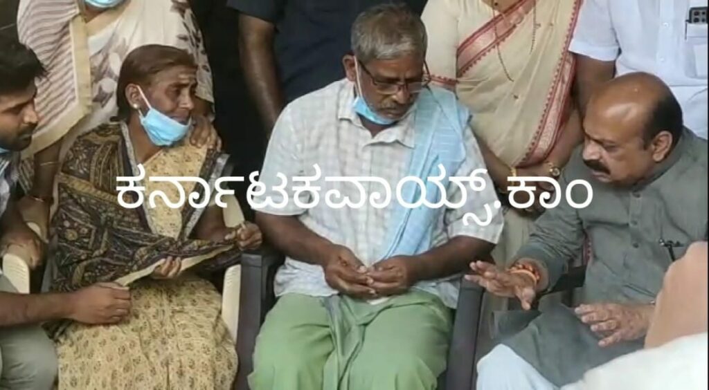 ಮೃತ ನವೀನ್ ನಿವಾಸಕ್ಕೆ ಆಗಮಿಸಿದ ಸಿ ಎಂ ಬೊಮ್ಮಾಯಿ.