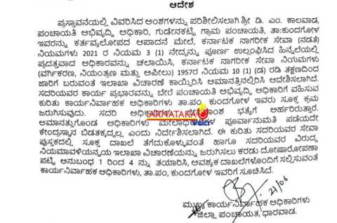 ಇವರ ಕಾರ್ಯ ಪ್ರಭಾರವನ್ನು ಬೇರೆ ಪಂಚಾಯತಿ ಅಭಿವೃದ್ಧಿ ಅಧಿಕಾರಿಗೆ ವಹಿಸುವ ಕುರಿತು ಸೂಕ್ತ ಕ್ರಮ ಜರುಗಿಸಲು ಕುಂದಗೋಳ ತಾಲೂಕು ಪಂಚಾಯ್ತಿ ಕಾರ್ಯನಿರ್ವಾಹಕ ಅಧಿಕಾರಿಗೆ ಸೂಚಿಸಿದ್ದಾರೆ. ಅಮಾನತ್ತುಗೊಂಡಿರುವ ಅಧಿಕಾರಿಗಳು ಜೀವನಾಂಶ ಭತ್ಯೆಗೆ ಅರ್ಹರಿರುತ್ತಾರೆ. ಅಮಾನತ್ತುಗೊಂಡ ಅಧಿಕಾರಿಗಳು ಮೇಲಾಧಿಕಾರಿಗಳ ಪೂರ್ವಾನುಮತಿ ಪಡೆಯದೇ ಕೇಂದ್ರಸ್ಥಾನ ಬಿಡತಕ್ಕದ್ದಲ್ಲ ಎಂದು ಆದೇಶದಲ್ಲಿ ನಿರ್ದೇಶಿಸಿ, ಜಿಲ್ಲಾ ಪಂಚಾಯತ ಮುಖ್ಯ ಕಾರ್ಯನಿರ್ವಾಹಕ ಅಧಿಕಾರಿ ಭುವನೇಶ ಪಾಟೀಲ ಅವರು ಸೂಚಿಸಿದ್ದಾರೆ.