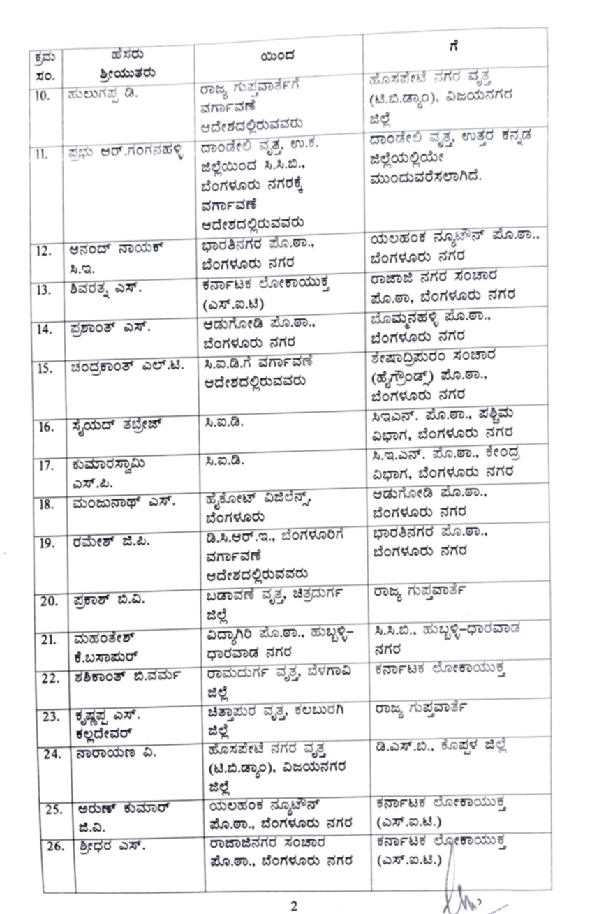 ವಿದ್ಯಾಗಿರಿ ಠಾಣೆಯಿಂದ ಹುಬ್ಬಳ್ಳಿ ಧಾರವಾಡ ಸಿಸಿಬಿ ವಿಭಾಗಕ್ಕೆ ಬಸಾಪುರ ಅವರ ವರ್ಗಾವಣೆಯಾಗಿದೆ. ಪ್ರಭು ಗಂಗೇನಹಳ್ಳಿಯವರನ್ನ ದಾಂಡೇಲಿ ವೃತ್ತಕ್ಕೆ ವರ್ಗಾವಣೆ ಆಗಿದೆ.