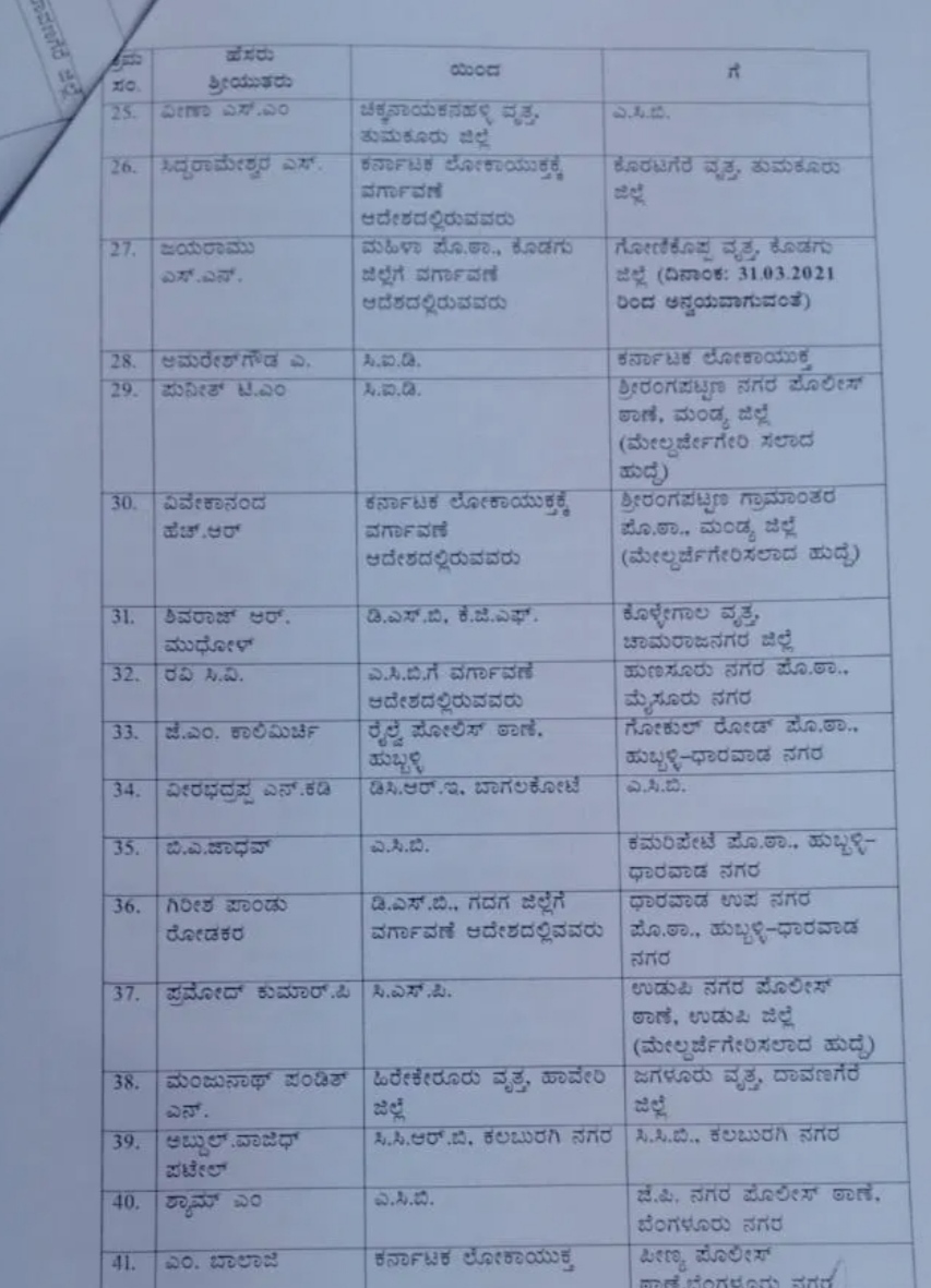 ಎಸಿಬಿಯಲ್ಲಿದ್ದ ಬಿ.ಎ.ಜಾಧವ ಅವರನ್ನ ಕಮರಿಪೇಟೆ ಪೊಲೀಸ್ ಠಾಣೆಗೆ ವರ್ಗಾವಣೆ ಮಾಡಲಾಗಿದೆ. ಸಿಸಿಬಿ ಕಲಬುರಗಿ ಯಲ್ಲಿದ್ದ ಅಬ್ದುಲ ವಾಜೀದ ಪಟೇಲ್ ಅವರನ್ನ ಸಿಸಿಆರ್ ಬಿ ಗೆ ವರ್ಗಾಯಿಸಲಾಗಿದೆ.