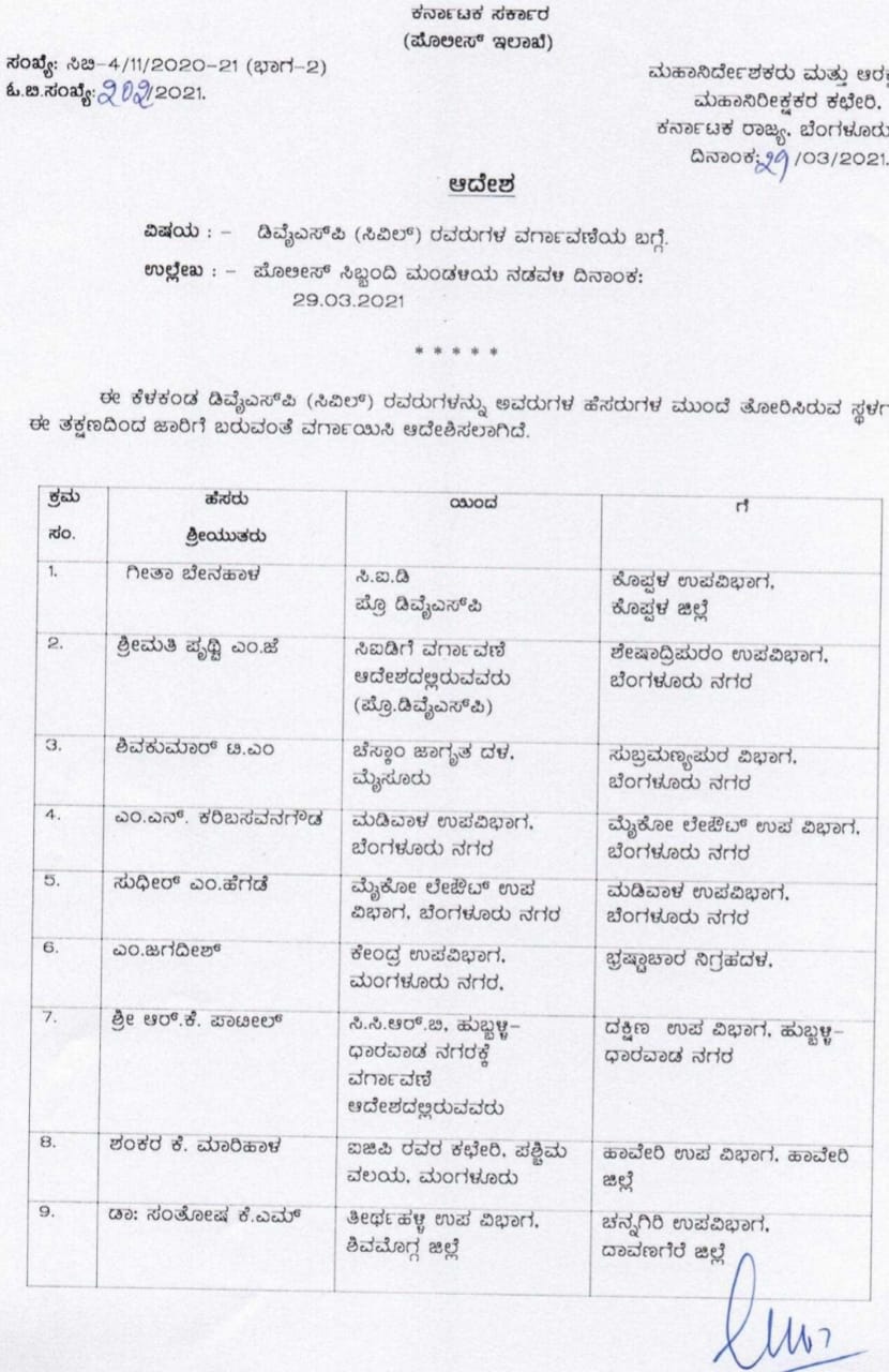 ಹದಿನೆಂಟು ಡಿವೈಎಸ್ಪಿಗಳನ್ನ ವರ್ಗಾವಣೆ ಮಾಡಿದ್ದು ಹುಬ್ಬಳ್ಳಿ ದಕ್ಷಿಣ ಉಪವಿಭಾಗಕ್ಕೆ ಆರ್.ಕೆ.ಪಾಟೀಲ ಅವರನ್ನ ವರ್ಗಾವಣೆ ಮಾಡಲಾಗಿದೆ. ಶಂಕರ ಮಾರಿಹಾಳ ಅವರನ್ನ ಹಾವೇರಿ ಉಪವಿಭಾಗಕ್ಕೆ ವರ್ಗಾವಣೆ ಮಾಡಲಾಗಿದೆ.