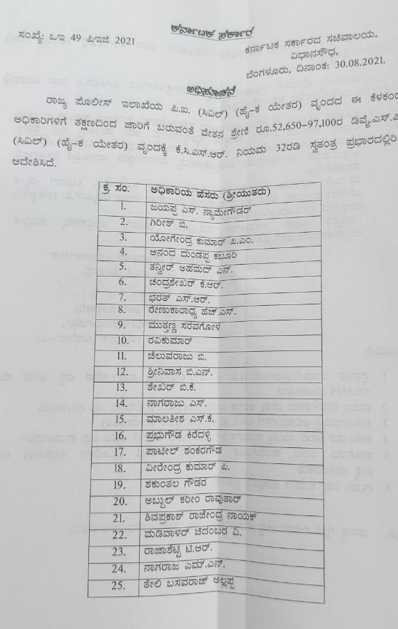 ಸರವಗೋಳ, ಭರತರೆಡ್ಡಿ, ಪ್ರಭುಗೌಡ, ಶಿವಪ್ರಕಾಶ ಸೇರಿದಂತೆ 25 ಇನ್ಸಪೆಕ್ಟರಗಳಿಗೆ ಪ್ರಮೋಷನ್…!