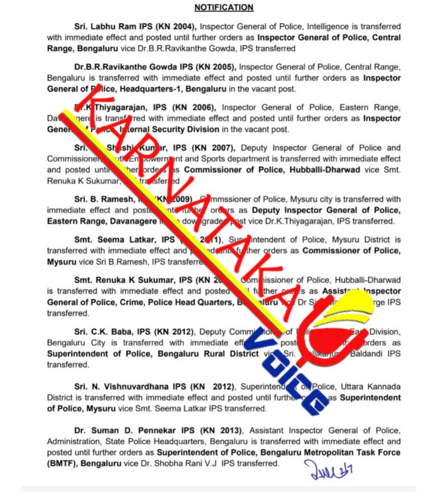 ಹಲವು ಐಪಿಎಸ್ ಅಧಿಕಾರಿಗಳ ವರ್ಗಾವಣೆಯನ್ನ ರಾಜ್ಯ ಸರಕಾರ ಹೊರಡಿಸಿದ್ದು ಈ ಹಿಂದೆ ಕಮೀಷನರ್ ಆಗಿದ್ದ ಲಾಬುರಾಮ್ ಹಾಗೂ ರವಿಕಾಂತೇಗೌಡ ಅವರನ್ನೂ ಸ್ಥಾನಪಲ್ಲಟ ಮಾಡಲಾಗಿದೆ.