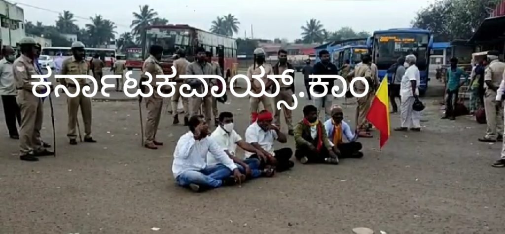 ಸಾರಿಗೆ ಬಸ್ ಗಳು ಸಂಚಾರ ನಡೆಸದಂತೆ ಮನವಿ ಮಾಡಿಕೊಂಡರೂ ಬಂದ್ ಮಾಡದ ಹಿನ್ನೆಲೆಯಲ್ಲಿ ಬಸ್ ಹೊರಗೆ ಹೋಗದಂತೆ ಡೀಪೋದ ಮುಂದೆ ಪ್ರತಿಭಟನೆ ನಡೆಸಿದರು. ಸಂಚರಿಸುವ ಬಸ್ ಗಳ ಮುಂದೆ ಹೋರಾಟ ಮುಂದುವರೆದಿದೆ. ನಗರದ ಬಹುತೇಕ ಅಂಗಡಿಮುಗ್ಗಟ್ಟುಗಳು ಬಂದ್ ಆಗಿವೆ.