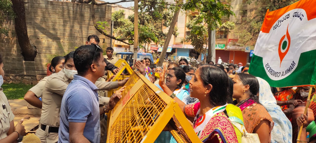 ಹುಬ್ಬಳ್ಳಿ-ಧಾರವಾಡ ಮಹಾನಗರ ಮಹಿಳಾ ಕಾಂಗ್ರೆಸ್ ವತಿಯಿಂದ ನಡೆಯುತ್ತಿದ್ದ ಹೋರಾಟದಲ್ಲಿ ಹಲವು ಮಹಿಳಾ ಕಾರ್ಯಕರ್ತರು ಭಾಗವಹಿಸಿದ್ದರು. ಆಗ ಬ್ಯಾರಿಕೇಡಿನ ಬಳಿ ನಿಂತಿದ್ದ ಹೊನ್ನಪ್ಪನವರ ಎಂಬ ಗೋಕುಲ ಠಾಣೆಯ ಹವಾಲ್ದಾರ ಯೂನಿಫಾರ್ಮ್ ಇಲ್ಲದೇ, ಕೂಲಿಂಗ್ ಗ್ಲಾಸ್ ನ್ನ ಹೀರೋಗಳ ಹಾಗೇ ತಲೆಗೆ ಏರಿಸಿಕೊಂಡು ಮಹಿಳೆಯರಿಗೆ ಏಕ ವಚನದಲ್ಲಿ ಮಾತನಾಡಿದ್ದನ್ನ, ಪ್ರಶ್ನಿಸಿದ ಮಹಿಳಾ ಕಾರ್ಯಕರ್ತರಿಗೆ ಮತ್ತೆ ಆವಾಜ್ ಹಾಕಿದರು.