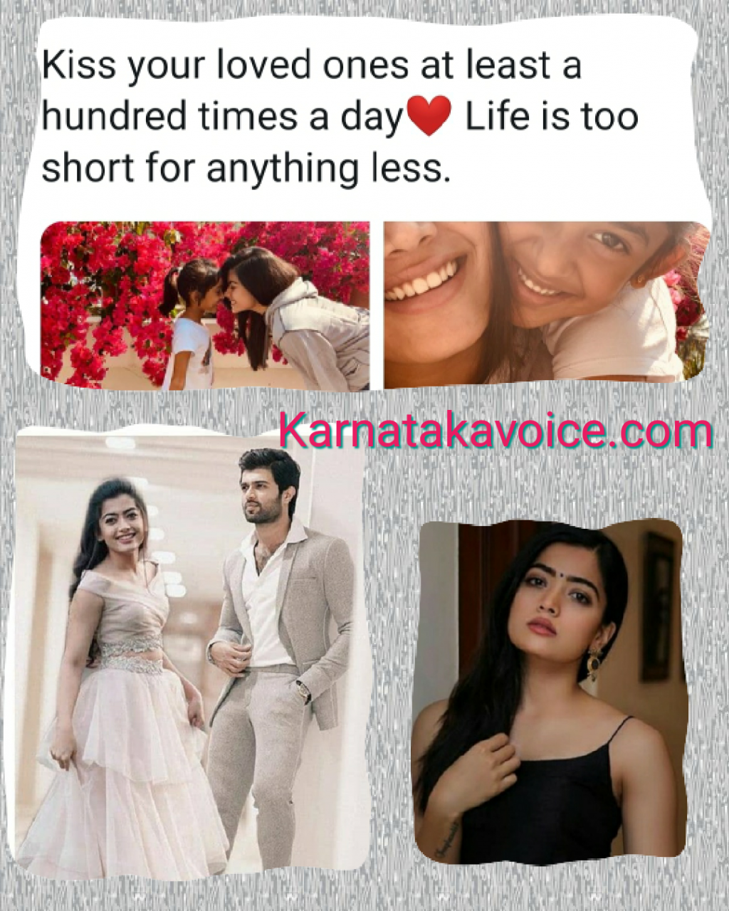 ರಶ್ಮಿಕಾ ಇತ್ತೀಚೆಗೆ ಮನೆಗೆ ಬಂದಾಗ ಅಮ್ಮ, ತಂಗಿ ಮತ್ತು ಮುದ್ದಿನ ನಾಯಿಮರಿಯೊಂದಿಗೆ ಸಮಯ ಕಳೆದಿದ್ದಾರೆ. ಈ ಎಲ್ಲ ಪೋಟೊಗಳನ್ನ ಟ್ವಿಟರ್ನಲ್ಲಿ ಅಪ್ಲೋಡ್ ಮಾಡಿ ‘ಪ್ರೀತಿಸಿದವರಿಗೆ ದಿನಕ್ಕೆ ನೂರು ಸಲವಾದರೂ ಮುತ್ತು ಕೊಡಿ’ ಎಂದು ಬರೆದುಕೊಂಡಿದ್ದಾರೆ.