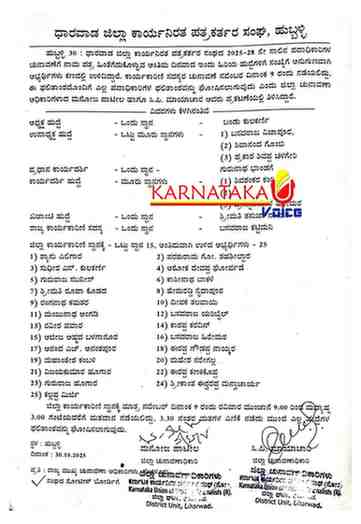ಇಂದು ನಡೆದ ಅವಿರೋಧವಾಗಿ ಸರಳ ಸ್ವಭಾವದ ಬಂಡು ಕುಲಕರ್ಣಿ ಅವರು ಅಧ್ಯಕ್ಷರಾಗಿ, ಉಪಾಧ್ಯಕ್ಷರಾಗಿ ಬಸವರಾಜ ವಿಜಾಪುರ, ಶಿವಾನಂದ ಗೊಂಬಿ, ಪ್ರಕಾಶ ಚಳಗೇರಿ, ಪ್ರಧಾನ ಕಾರ್ಯದರ್ಶಿಯಾಗಿ ಗುರು ಭಾಂಡಗೆ, ಖಜಾಂಚಿಯಾಗಿ ತನುಜಾ ನಾಯಕ, ಕಾರ್ಯದರ್ಶಿಗಳಾಗಿ ಪ್ರಸನ್ನ ಹಿರೇಮಠ, ಶಿವಶಂಕರ ಕಂಠಿ ಸೇರಿದಂತೆ ಮತ್ತೋರ್ವರು ಅವಿರೋಧವಾಗಿ ಆಯ್ಕೆಯಾಗಿದ್ದಾರೆ.