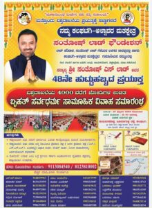 ವಿಶ್ವ ದಾಖಲೆಯ 4000 ವರೆಗೆ ಜೋಡಿಗಳ ಬೃಹತ್ ಉಚಿತ ಸರ್ವಧರ್ಮ ಸಾಮೂಹಿಕ ವಿವಾಹ ಕಾರ್ಯಕ್ರಮವನ್ನು ಹಮ್ಮಿಕೊಳ್ಳಲಾಗಿದೆ