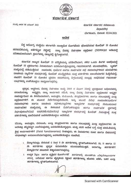 ಉನ್ನತ ಶಿಕ್ಷಣ ಹಾಗೂ ವೃತ್ತಿಪರ ಕೋರ್ಸ್ ಗಳ ತರಗತಿಯಲ್ಲಿ ಮಂಡಳಿಯ ಪರೀಕ್ಷೆ ಬರೆಯುವ ಹಾಗೂ ವೈಧ್ಯಕೀಯ ಶಿಕ್ಷಣದ ತರಗತಿಗಳನ್ನ ಜೊರತುಪಡಿಸಿ, ಇತರ ಎಲ್ಲ ತರಗತಿಗಳನ್ನ ರದ್ದುಗೊಳಿಸಲಾಗಿದೆ.