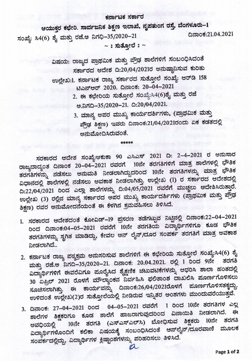 ಮೌಲ್ಯಾಂಕನ ಫಲಿತಾಂಶಗಳನ್ನು ಏಪ್ರಿಲ್ 26ರೊಳಗೆ ಪ್ರಕಟಿಸಿ 27ರಿಂದ ಮೇ 4ರ ವರೆಗೆ ಶಾಲೆಗೆ ಹೊಗುವುದರಿಂದ ವಿನಾಯಿತಿ ಪಡೆಯಬಹುದು. ಆದರೆ ಎಸ್ಎಸ್ಎಲ್ ಸಿ ಬೋಧಕರು ಆನ್ ಲೈನ್, ದೂರವಾಣಿ ಮೂಲಕ ವಿದ್ಯಾರ್ಥಿಗಳೊಂದಿಗೆ ಸಂಪರ್ಕದಲ್ಲಿರಬೇಕು ಎಂದು ಸೂಚಿಸಲಾಗಿದೆ.