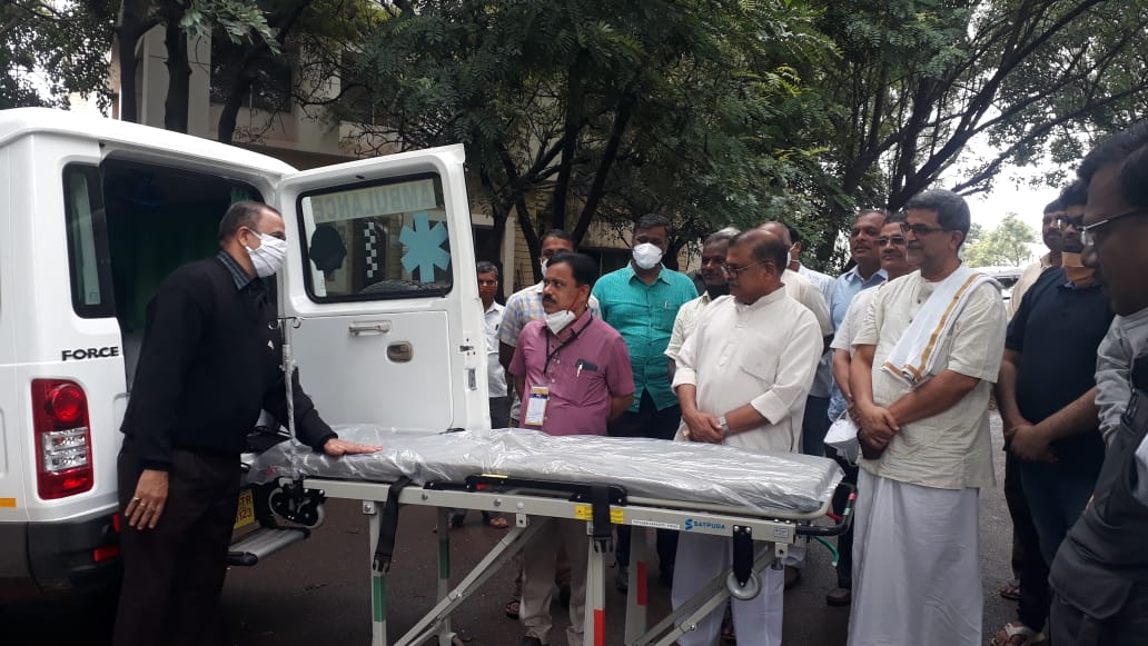 ಹುಬ್ಬಳ್ಳಿಯ ಬಿವಿಬಿ ಸೇವಾಭಾರತಿ ಕೋವಿಡ್ ಕೇರ್ ಸೆಂಟರ್ ಬಳಿ ನಡೆದ ಕಾರ್ಯಕ್ರಮದಲ್ಲಿ ಅಂಬ್ಯುಲೆನ್ಸ್ ನ್ನ ಹಸ್ತಾಂತರ ಮಾಡಲಾಯಿತು.