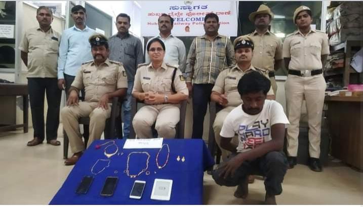 ಹುಬ್ಬಳ್ಳಿ: ರೇಲ್ವೆ ಪ್ರಯಾಣಿಕರ 10ಲಕ್ಷ ಮೌಲ್ಯದ ಬಂಗಾರದ ಆಭರಣ ಕಳ್ಳತನ ಮಾಡಿ ತಲೆ ಮರೆಸಿಕೊಂಡಿದ್ದ ಆರೋಪಿಯನ್ನ ಬಂಧನ ಮಾಡುವಲ್ಲಿ ಹುಬ್ಬಳ್ಳಿ ರೇಲ್ವೆ ಠಾಣೆಯ ಪೊಲೀಸರು ಯಶಸ್ವಿಯಾಗಿದ್ದಾರೆ. ಹುಬ್ಬಳ್ಳಿ...