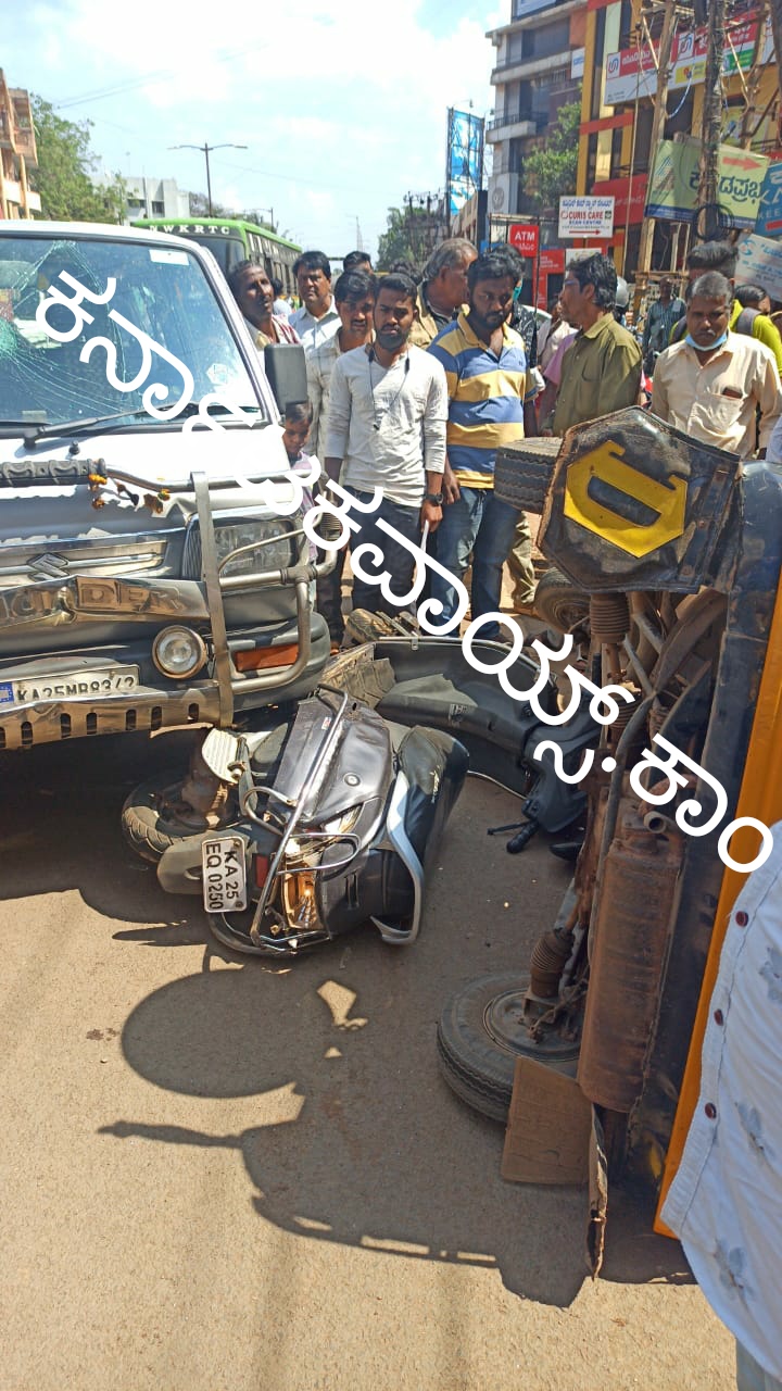 ಹುಬ್ಬಳ್ಳಿ: ನಗರದ ಜನನಿಬೀಡ ಪ್ರದೇಶವಾದ ದೇಸಾಯಿ ಸರ್ಕಲ್ ಬಳಿಯೇ ಸರಣಿ ಅಪಘಾತವಾಗಿದ್ದು, ಮಾರುತಿ ಓಮಿನಿಯೊಂದು ಸ್ಕೂಟಿಗೆ ಹೊಡೆದು, ರಾಂಗ್ ರೂಟ್ ಲ್ಲಿ ಬರುತ್ತಿದ್ದ ಆಟೋರಿಕ್ಷಾಗೂ ಡಿಕ್ಕಿ ಹೊಡೆದ...