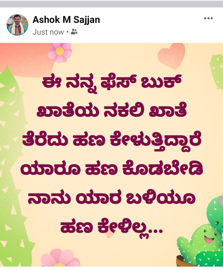 ಹುಬ್ಬಳ್ಳಿ: ಕರ್ನಾಟಕ ಸರ್ಕಾರಿ ಗ್ರಾಮೀಣ ಪ್ರಾಥಮಿಕ ಶಾಲಾ ಶಿಕ್ಷಕರ ಸಂಘದ ರಾಜ್ಯಾಧ್ಯಕ್ಷ ಅಶೋಕ ಸಜ್ಜನ ಅವರ ಫೇಸ್ ಬುಕ್ ಹ್ಯಾಕ್ ಮಾಡಲಾಗಿದ್ದು, ಪರಿಚಿತರಿಂದ ಹಣವನ್ನ ಪಡೆಯಲಾಗುತ್ತಿದೆ. ಹಾಗಾಗಿ,...
