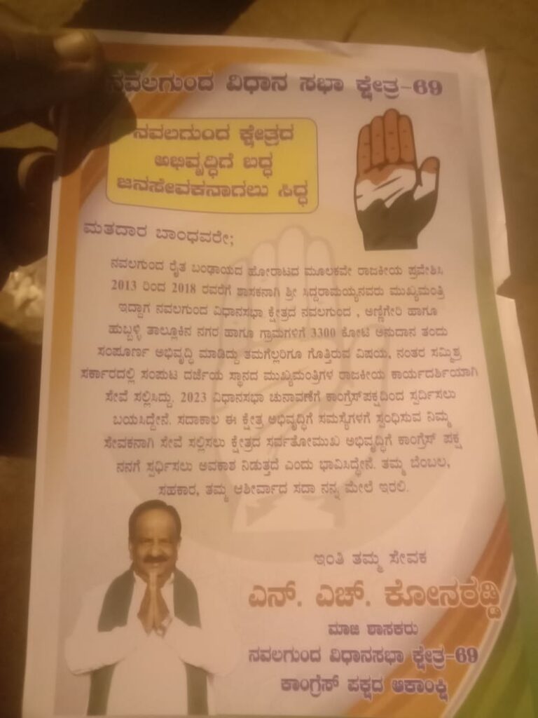 ನವಲಗುಂದ: ಕಳೆದ ವರ್ಷ ಕಾಂಗ್ರೆಸ್ ಪಕ್ಷಕ್ಕೆ ಎಂಟ್ರಿ ಕೊಟ್ಟಿರುವ ಜೆಡುಎಸ್ನ ಮಾಜಿ ಶಾಸಕ ಎನ್.ಎಚ್.ಕೋನರೆಡ್ಡಿಯವರು ಕೂಸು ಹುಟ್ಟುವ ಮುನ್ನವೇ ಕುಲಾವಿ ಹೊಲೆಸಿಕೊಳ್ಳುತ್ತಿದ್ದಾರಾ ಎಂಬ ಪ್ರಶ್ನೆಯನ್ನ ಸ್ವತಃ ಕಾರ್ಯಕರ್ತರು...