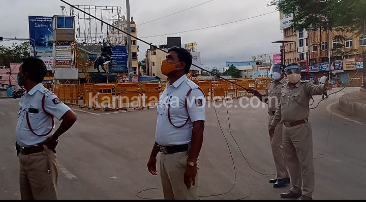 ಹುಬ್ಬಳ್ಳಿ: ನಗರದ ಚೆನ್ನಮ್ಮ ವೃತ್ತದಲ್ಲಿ ಲಾಕ್ ಡೌನ್ ಕರ್ತವ್ಯ ನಿರ್ವಹಣೆ ಮಾಡುತ್ತಿರುವ ಪೊಲೀಸ್ ಇನ್ಸಪೆಕ್ಟರ್ ರವಿಚಂದ್ರ ಡಿ.ಬಿ ಅವರಿಗೇನೆ ‘ನಾನು ಬಸವರಾಜ್ ಬೊಮ್ಮಾಯಿಗೆ’ ಕಾಲ್ ಮಾಡ್ತೇನಿ ನೋಡಿಗ...