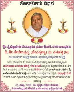 ಹುಬ್ಬಳ್ಳಿ: ನಿನ್ನೆ ಇಳಿಸಂಜೆಯ ಹೊತ್ತಿನಲ್ಲಿ ಆಗುಂತಕನಿಂದ ಹತ್ಯೆಗೊಳಗಾದ ದೇವೆಂದ್ರಪ್ಪ (ದೇವಪ್ಪಜ್ಜ) ಮ. ವನಹಳ್ಳಿ ಅವರ ಅಂತ್ಯಕ್ರಿಯೆ ಹುಬ್ಬಳ್ಳಿ ತಾಲೂಕಿನ ಕುಸುಗಲ್ ಗ್ರಾಮದ ರುದ್ರಭೂಮಿಯಲ್ಲಿ ನಡೆಯಲಿದೆ. ಬೆಳಿಗ್ಗೆ ವಿದ್ಯಾನಗರದ...