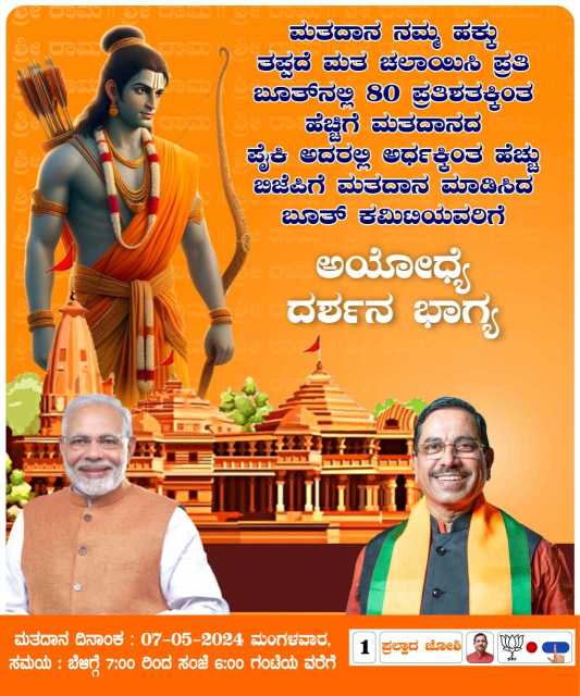 ಹುಬ್ಬಳ್ಳಿ: ಇಂದು ಮುಕ್ತಾಯಗೊಂಡ ಲೋಕಸಭಾ ಚುನಾವಣೆಯಲ್ಲಿ ಹೆಚ್ಚು ಮತಗಳನ್ನ ಹಾಕಿಸಿದವರಿಗೆ ಅಯೋಧ್ಯೆ ದರ್ಶನ ಭಾಗ್ಯ ಸಿಗಲಿದೆ. ಈ ಬಗ್ಗೆ ಧಾರವಾಡ ಜಿಲ್ಲೆಯ ಪ್ರಮುಖ ಗ್ರೂಫ್ಗಳಲ್ಲಿ ಪೋಸ್ಟರ್ ಹರಿಬಿಡಲಾಗಿದ್ದು,...