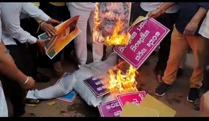 ಧಾರವಾಡ: ಕಾಂಗ್ರೆಸ್ ಪಕ್ಷದ ಕಾರ್ಯಕರ್ತರು ಧಾರವಾಡದ ಜಿಲ್ಲಾಧಿಕಾರಿ ಕಚೇರಿಯ ಮುಂಭಾಗದಲ್ಲಿ ಪ್ರತಿಭಟನೆ ನಡೆಸುತ್ತಿದ್ದ ವೇಳೆಯಲ್ಲಿ ಭಾವಚಿತ್ರಕ್ಕೆ ಬೆಂಕಿಯಿಟ್ಟಿದ್ದಾರೆಂದು ಆರೋಪಿಸಿ, ಧಾರವಾಡದ ಉಪನಗರ ಪೊಲೀಸ್ ಮುಂಭಾಗದಲ್ಲಿ ರಸ್ತೆ ತಡೆ...