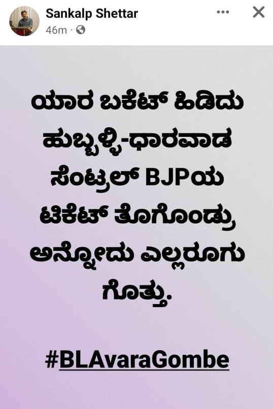 ಮಾಜಿ ಮುಖ್ಯಮಂತ್ರಿ ಜಗದೀಶ ಶೆಟ್ಟರ್ ಬಗ್ಗೆ ಶಾಸಕ ಮಹೇಶ ಟೆಂಗಿನಕಾಯಿ ಹೇಳಿಕೆ ಹಿನ್ನೆಲೆ ಫೀಲ್ಡಿಗಿಳಿದ ಶೆಟ್ಟರ್ ಪುತ್ರ ಹುಬ್ಬಳ್ಳಿ: ವಿಧಾನಪರಿಷತ್ ಸದಸ್ಯ ಪ್ರದೀಪ್ ಶೆಟ್ಟರ್ ಅಸಮಾಧಾನ ಬೆನ್ನಲ್ಲೆ,...