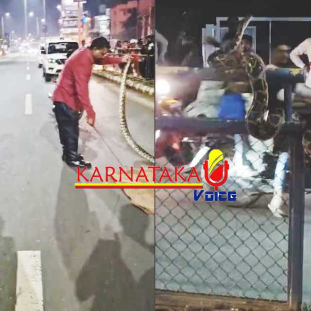 ಹುಬ್ಬಳ್ಳಿ: ಬೃಹದಾಕಾರದ ಹೆಬ್ಬಾವೊಂದು ಸುಮಾರು ಹೊತ್ತಿನವರೆಗೆ ಹುಬ್ಬಳ್ಳಿಯ ವಿದ್ಯಾನಗರದ ಬಿವಿಬಿ ಕಾಲೇಜ್ ಎದುರಿನ ಬಿಆರ್ಟಿಎಸ್ ಜ್ಯಾಲರಿ ಮೇಲೆ ಸಂಚರಿಸಿ, ಅಚ್ಚರಿ ಆತಂಕ ಸೃಷ್ಟಿಸಿದೆ. ಹೌದು... ಹೆಬ್ಬಾವು ಜನನಿಬೀಡ...