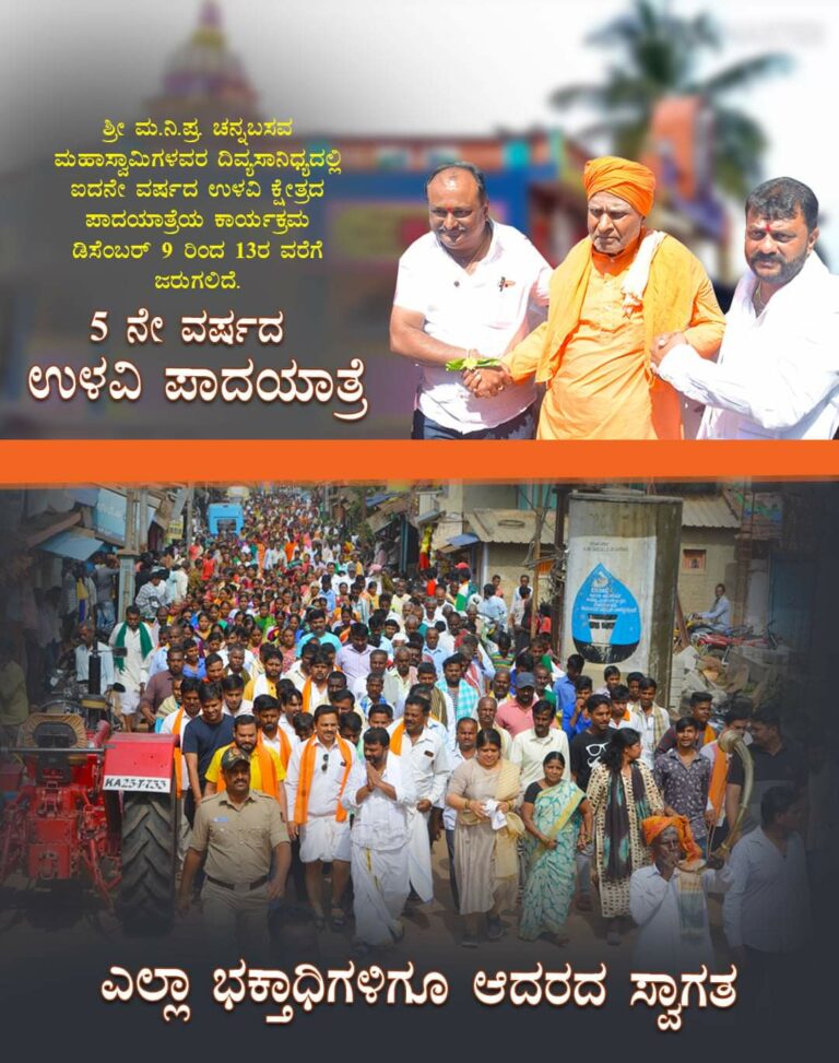 ಧಾರವಾಡ: ಡಿಸೆಂಬರ್ 9ರಿಂದ ಉಳವಿಯ ಶ್ರೀ ಚೆನ್ನಬಸವ ಕ್ಷೇತ್ರಕ್ಕೆ ಧಾರವಾಡ-71 ಕ್ಷೇತ್ರದ ಶಾಸಕ ಅಮೃತ ದೇಸಾಯಿ ಪಾದಯಾತ್ರೆ ಕೈಗೊಳ್ಳಲಿದ್ದು, ಕಾರ್ಯಕರ್ತರು ಅಭಿಮಾನಿಗಳು ಭಾಗವಹಿಸಲು ಕೊರೋನಾ ಡೋಸ್ ಕಡ್ಡಾಯ...