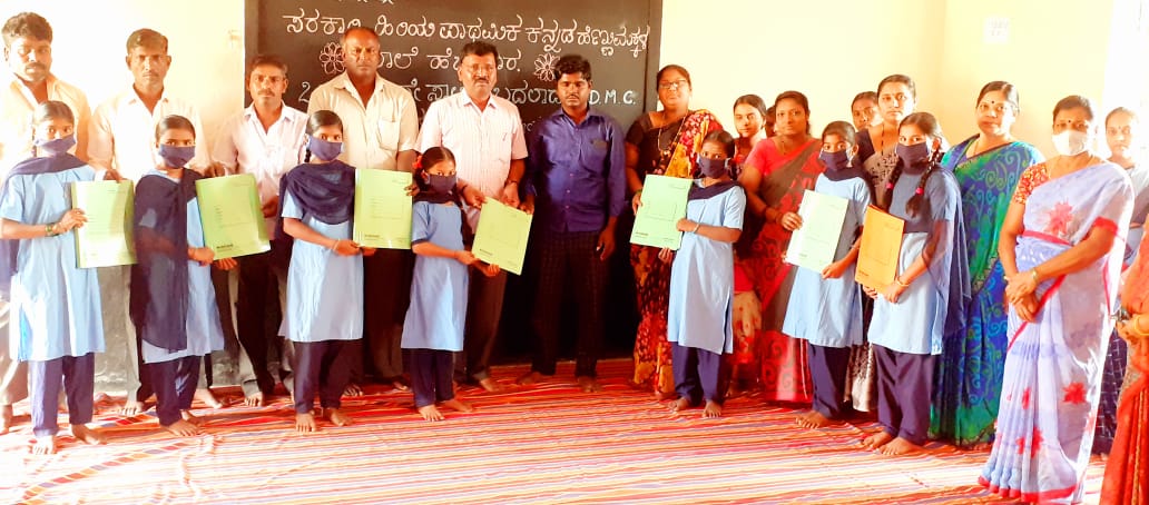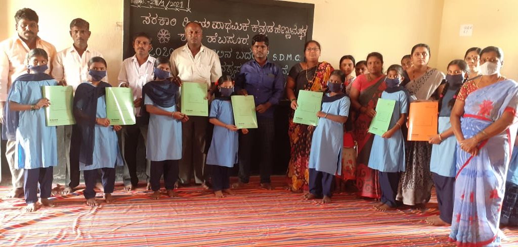 ಧಾರವಾಡ: ಜಿಲ್ಲೆಯ ಹುಬ್ಬಳ್ಳಿ ಗ್ರಾಮೀಣ ತಾಲೂಕಿನ ಬ್ಯಾಹಟ್ಟಿ ಕ್ಲಸ್ಟರ್ ವ್ಯಾಪ್ತಿಯ ಹೆಬಸೂರ ಗ್ರಾಮದ  ಸರಕಾರಿ ಹಿರಿಯ ಪ್ರಾಥಮಿಕ ಕನ್ನಡ ಹೆಣ್ಣು ಮಕ್ಕಳ ಶಾಲೆಯಲ್ಲಿ ವಿದ್ಯಾಗಮ- 2 ರ ಅನುಸಾರ ಮಕ್ಕಳ ಕೃತಿ ಸಂಪುಟ ನಿರ್ವಹಿಸುವ ಸಲುವಾಗಿ ಬೋಧನಾ, ಕಲಿಕಾ ಚಟುವಟಿಕೆಗಳನ್ನು ದಾಖಲಿಸಲು ಕರ್ನಾಟಕ  ಸರ್ಕಾರಿ ಗ್ರಾಮೀಣ ಪ್ರಾಥಮಿಕ ಶಾಲಾ ಶಿಕ್ಷಕರ ಸಂಘದಿಂದ ಶಾಲಾ ಬಾಲಕಿಯರಿಗೆ ಉಚಿತವಾಗಿ ಫೈಲ್ ಗಳನ್ನು ವಿತರಿಸಲಾಯಿತು.