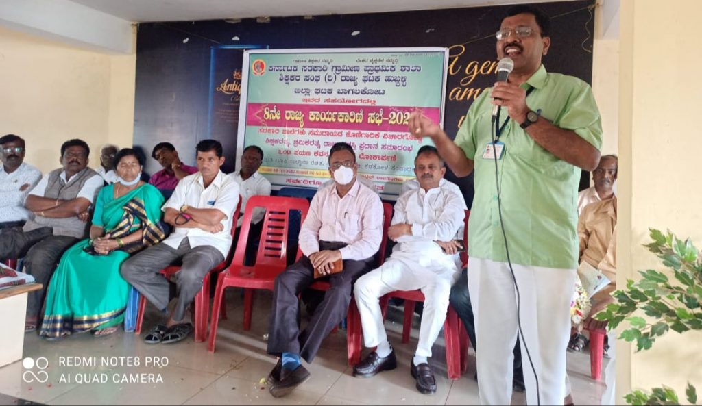 ನಗರದ ಬಸ್ ಸ್ಟ್ಯಾಂಡ್ ಎದುರುಗಡೆ ಇರುವ ಹೋಟೆಲ್ ರಾಜ ಸಂಗಮ ಫಂಕ್ಷನ್ ಹಾಲ್ ನಲ್ಲಿ ಭಾನುವಾರ ದಿನಾಂಕ 22ರಂದು ಕರ್ನಾಟಕ ಸರಕಾರಿ ಗ್ರಾಮೀಣ ಪ್ರಾಥಮಿಕ ಶಾಲಾ ಶಿಕ್ಷಕರ ಸಂಘದ ರಾಜ್ಯ ಘಟಕ ಹುಬ್ಬಳ್ಳಿ ಹಾಗೂ ಬಾಗಲಕೋಟ ಜಿಲ್ಲಾ ಘಟಕದ ಸಹಯೋಗದಲ್ಲಿ ಎಂಟನೇಯ ರಾಜ್ಯ ಕಾರ್ಯಕಾರಣಿ ಸಭೆಯಲ್ಲಿ ಭಾಗವಹಿಸಿ ಸಜ್ಜನ ಮಾತನಾಡಿದರು.