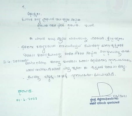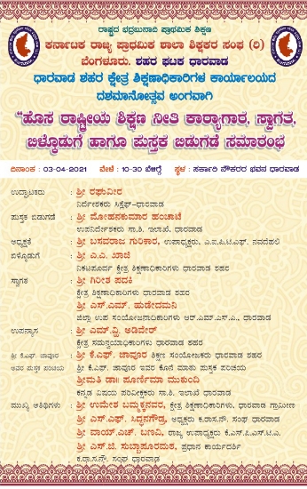 ಧಾರವಾಡದ ಸರಕಾರಿ ನೌಕರರ ಭವನದಲ್ಲಿ ಇಂದು ಕರ್ನಾಟಕ ರಾಜ್ಯ ಪ್ರಾಥಮಿಕ ಶಾಲಾ ಶಿಕ್ಷಕರ ಸಂಘ ಹಾಗೂ ಧಾರವಾಡ ಶಹರ ಕ್ಷೇತ್ರ ಶಿಕ್ಷಣಾಧಿಕಾರಿಗಳ ಕಾರ್ಯಾಲಯದ ದಶಮಾನೋತ್ಸವ ಅಂಗವಾಗಿ ‘ಹೊಸ ರಾಷ್ಟ್ರೀಯ ಶಿಕ್ಷಣ ನೀತಿ ಕಾರ್ಯಾಗಾರ, ಸ್ವಾಗತ, ಬೀಳ್ಕೋಡುಗೆ ಹಾಗೂ ಪುಸ್ತಕ ಬಿಡುಗಡೆ ಸಮಾರಂಭಕ್ಕೆ ಕ್ಷೇತ್ರ ಶಿಕ್ಷಣಾಧಿಕಾರಿಗಳು ಪರವಾನಿಗೆ ನೀಡಿದ್ದಾರೆ.