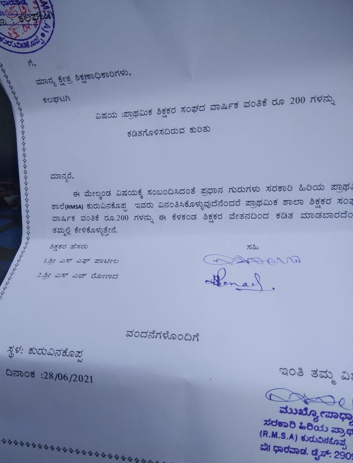 ಕ.ರಾ.ಪ್ರಾ.ಶಾ.ಶಿ. ಸಂಘಕ್ಕೆ ರೂ.200 ಕಡಿತಕ್ಕೆ ಅಸಮ್ಮತಿ ನೀಡಿದ ಕಲಘಟಗಿ ತಾಲೂಕ ಶಿಕ್ಷಕರು…!