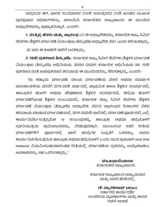 ಹೊರಬಿತ್ತು ಶಿಕ್ಷಕರ ವರ್ಗಾವಣೆಯ ಸುಗ್ರಿವಾಜ್ಞೆ…!