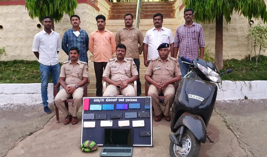 ಧಾರವಾಡದ ಹುಸೇನ ಅಬ್ದುಲಗಫಾರ ಶೇಖ್ ಅಲಿಯಾಸ್ ನಮ್ಮಖವಾಲೆ ಎಂಬ ಆರೋಪಿಯೇ ಮನೆಯಲ್ಲಿ ಜನರು ಮಲಗಿದಾಗ ಕಿಡಕಿಯಿಂದ ಮೊಬೈಲ್, ಲ್ಯಾಪ್ ಟಾಪ್ ಎಗರಿಸುತ್ತಿದ್ದ. ಈ ಬಗ್ಗೆ ಹಲವು ದಿನಗಳಿಂದ ಹುಡುಕಾಟ ನಡೆಸಿದ್ದ ಪೊಲೀಸರಿಗೆ ಆರೋಪಿ ಸಿಕ್ಕಿ ಬಿದ್ದಿದ್ದಾನೆ.