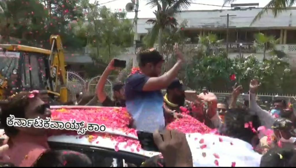 ಕಲಬುರಗಿ: ಯುವರತ್ನ ಯುವ ಸಂಭ್ರಮಕ್ಕಾಗಿ ನಗರಕ್ಕೆ ಆಗಮಿಸಿರುವ ಪವರ್ ಸ್ಟಾರ್ ಪುನೀತ ರಾಜಕುಮಾರ ಅದ್ಧೂರಿ ಸ್ವಾಗತವನ್ನ ಅಭಿಮಾನಿಗಳು ನೀಡಿದ್ದು, ಅಭಿಮಾನಿಗಳ ಪ್ರೀತಿಯಿಂದ ಸುರಿಸಿದ ಹೂಮಳೆಯಿಂದ ಬಿಸಿಲಲ್ಲೂ ನೆನೆದ ಪುನೀತರಾಜಕುಮಾರ.
